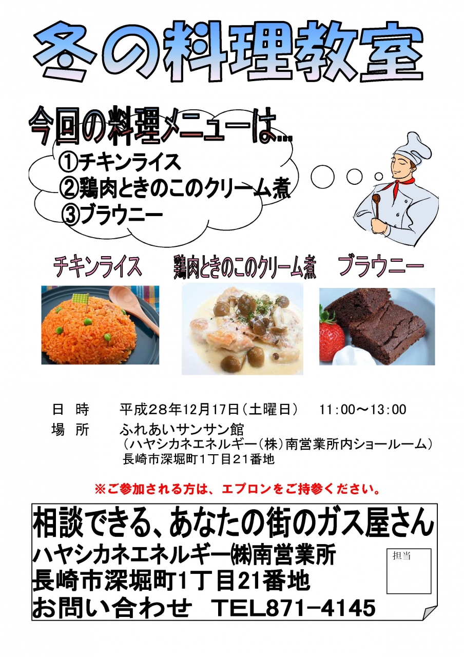 ※ご参加される方は、エプロンをご持参ください。