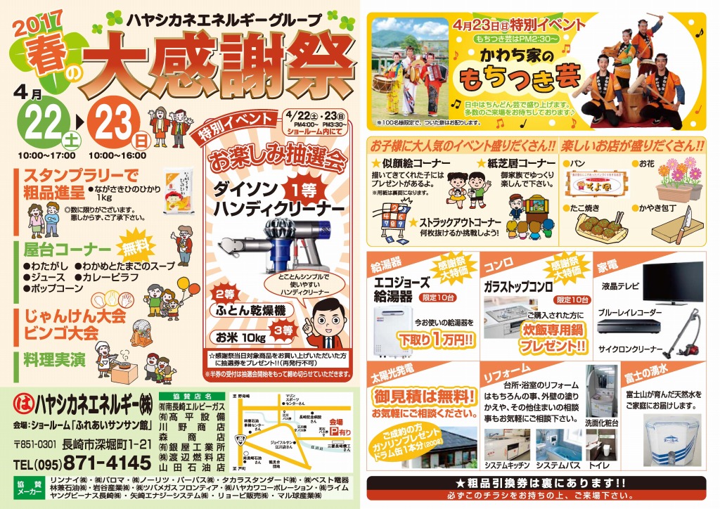 4月22日(土)~23日(日)、ハヤシカネエネルギーグループ『2017春の大感謝祭』を開催します!